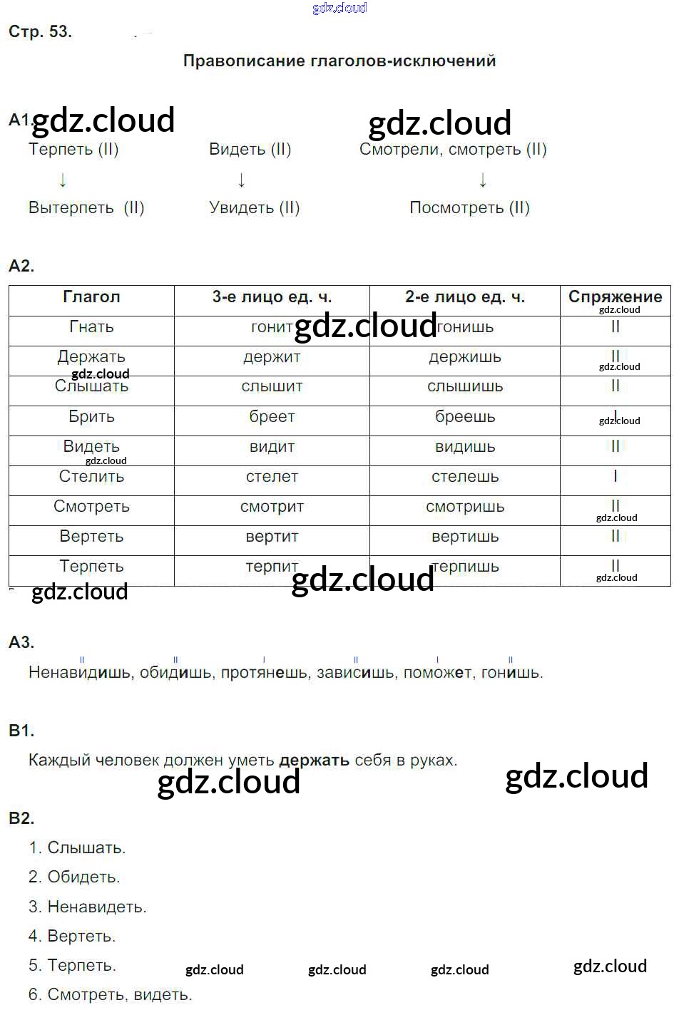Ответ на задание 53 Тетрадь-тренажер Русский язык за 4 (четвертый) класс Мишакина, Александрова Начальная школа XXI века 2017