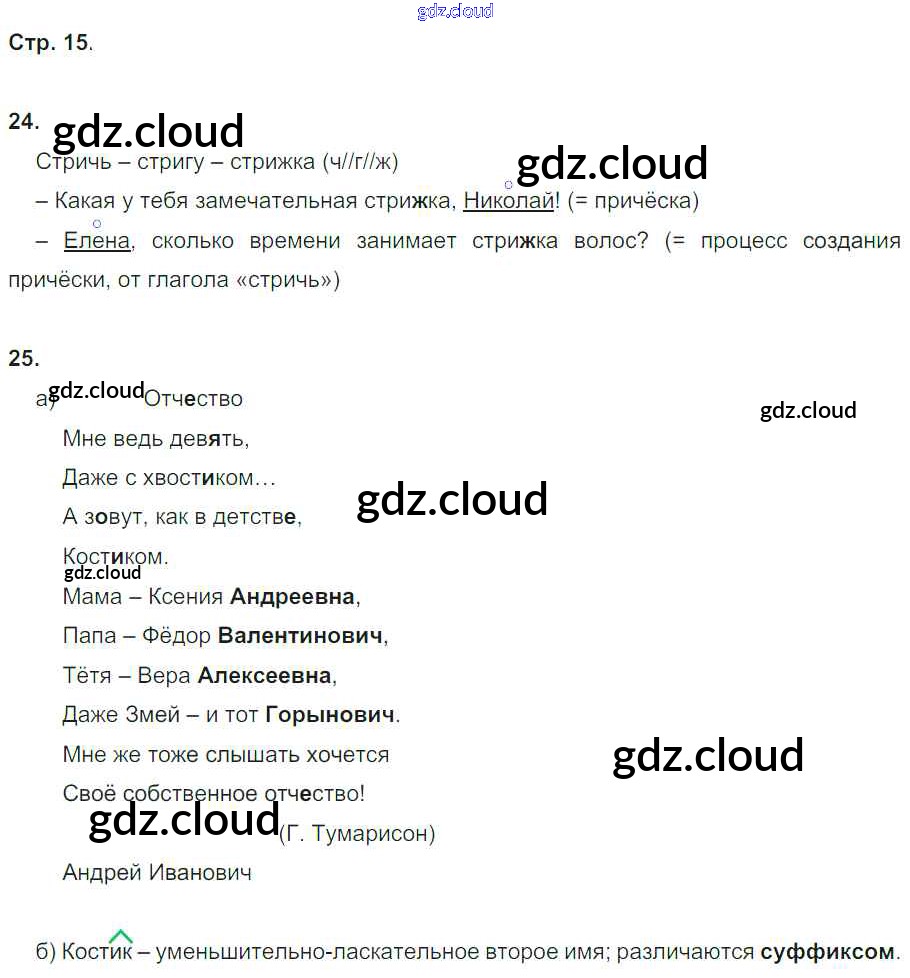 Ответ на задание 15 Рабочая тетрадь Русский язык за 4 (четвертый) класс Нечаева, Воскресенская 2014