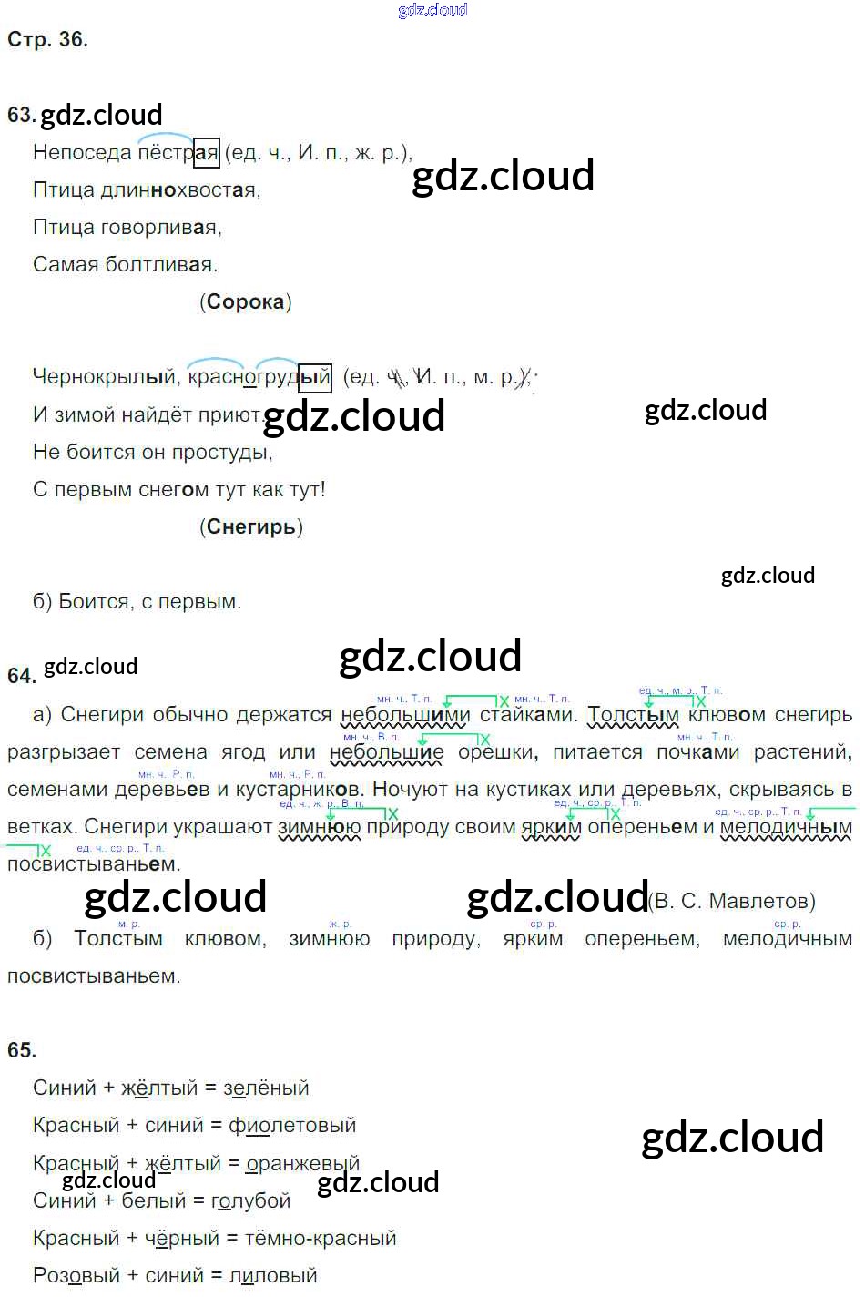 Ответ на задание 36 Рабочая тетрадь Русский язык за 4 (четвертый) класс Нечаева, Воскресенская 2014