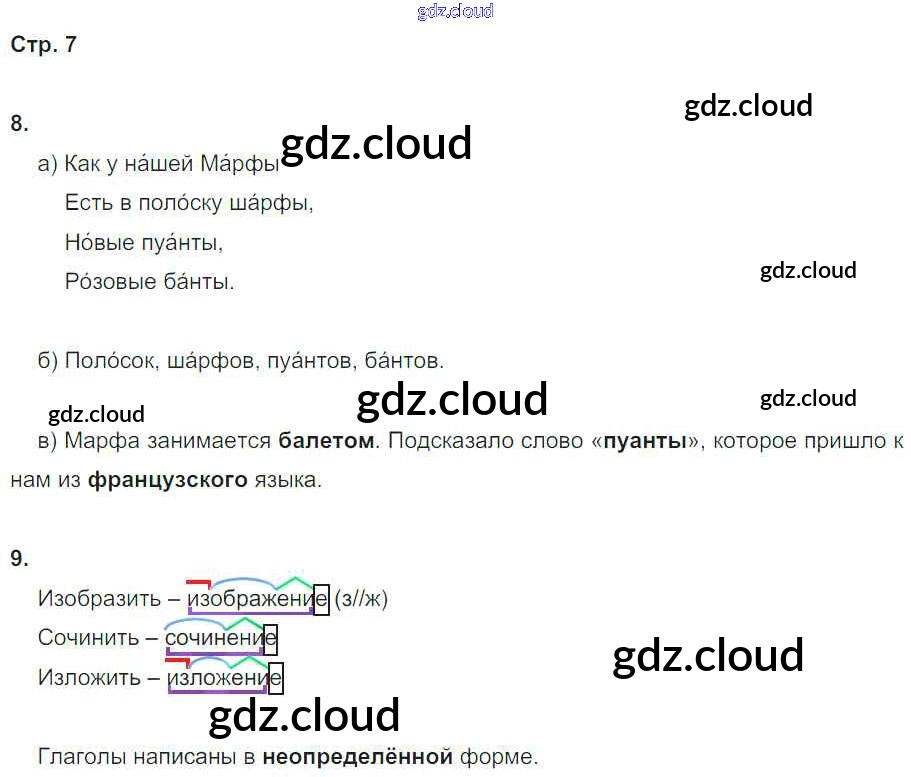 Ответ на задание 7 Рабочая тетрадь Русский язык за 4 (четвертый) класс Нечаева, Воскресенская 2014