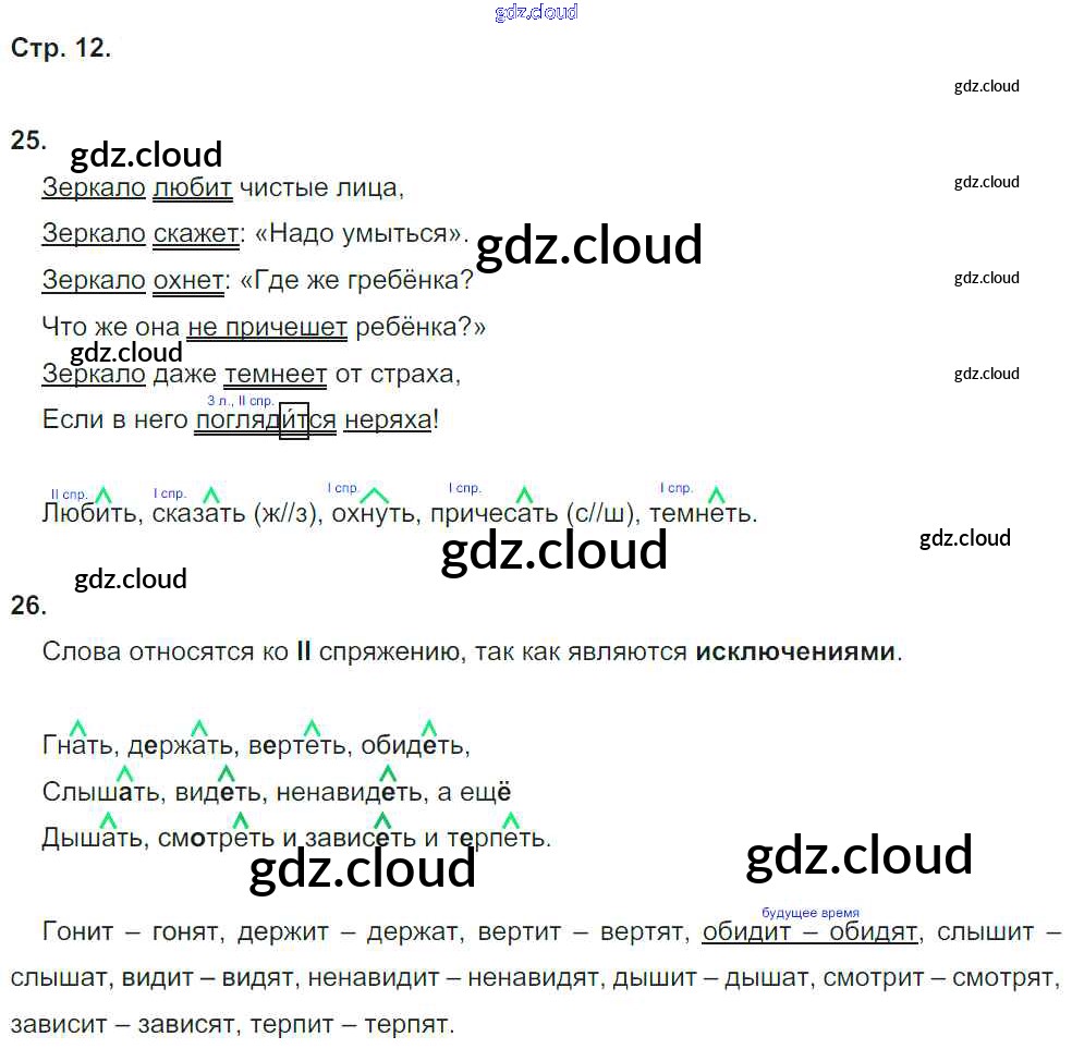 Ответ на задание 12 Рабочая тетрадь Русский язык за 4 (четвертый) класс Нечаева, Воскресенская 2014