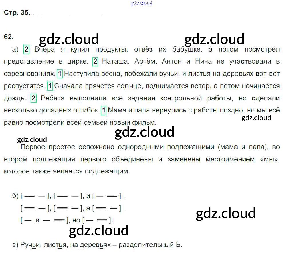 Ответ на задание 35 Рабочая тетрадь Русский язык за 4 (четвертый) класс Нечаева, Воскресенская 2014