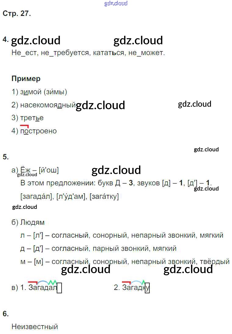 Ответ на задание 27 Рабочая тетрадь Русский язык за 4 (четвертый) класс Нечаева, Воскресенская 2014