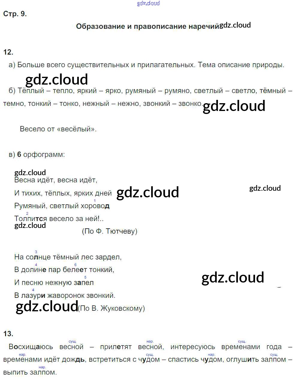 Ответ на задание 9 Рабочая тетрадь Русский язык за 4 (четвертый) класс Нечаева, Воскресенская 2014