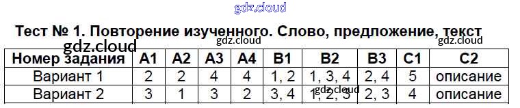 Ответ на задание Тесты №1. Повторение изученного. Слово, предложение, текст Контрольно-измерительные материалы (КИМ) Русский язык за 4 (четвертый) класс Никифорова 2017