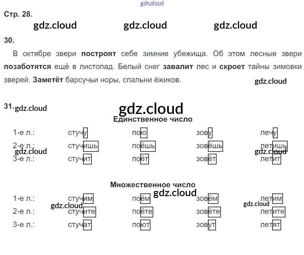 Ответ на задание 28 Рабочая тетрадь Русский язык за 4 (четвертый) класс Песняева, Анащенкова УМК 2017 Часть 1, 2
