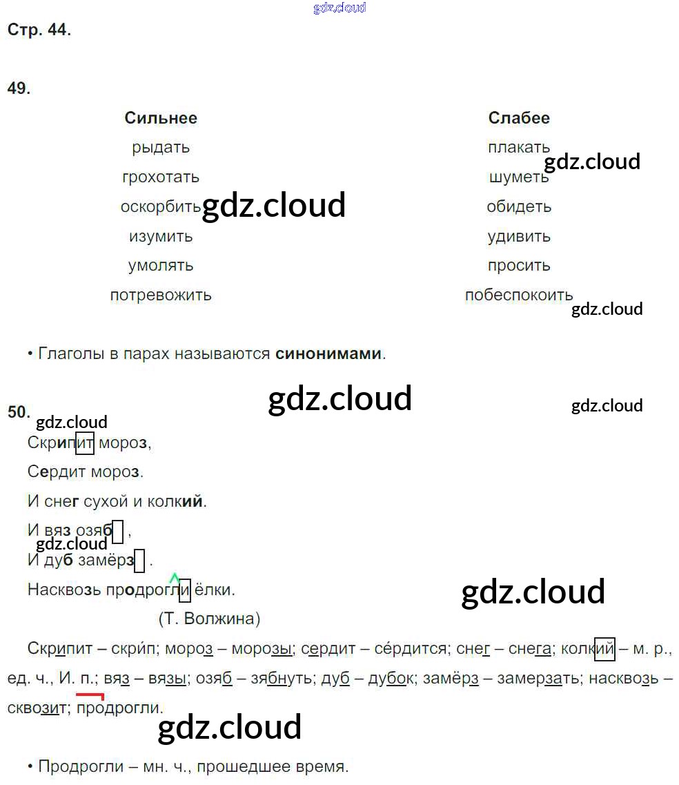 Ответ на задание 44 Рабочая тетрадь Русский язык за 4 (четвертый) класс Песняева, Анащенкова УМК 2017 Часть 1, 2