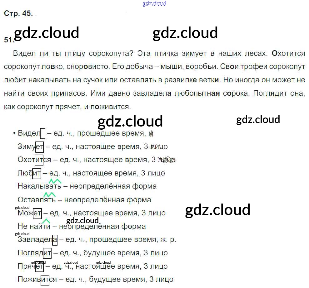 Ответ на задание 45 Рабочая тетрадь Русский язык за 4 (четвертый) класс Песняева, Анащенкова УМК 2017 Часть 1, 2