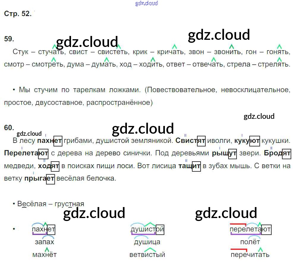 Ответ на задание 52 Рабочая тетрадь Русский язык за 4 (четвертый) класс Песняева, Анащенкова УМК 2017 Часть 1, 2