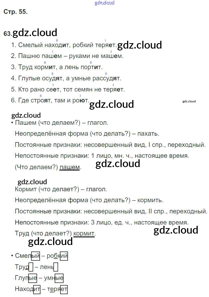 Ответ на задание 55 Рабочая тетрадь Русский язык за 4 (четвертый) класс Песняева, Анащенкова УМК 2017 Часть 1, 2