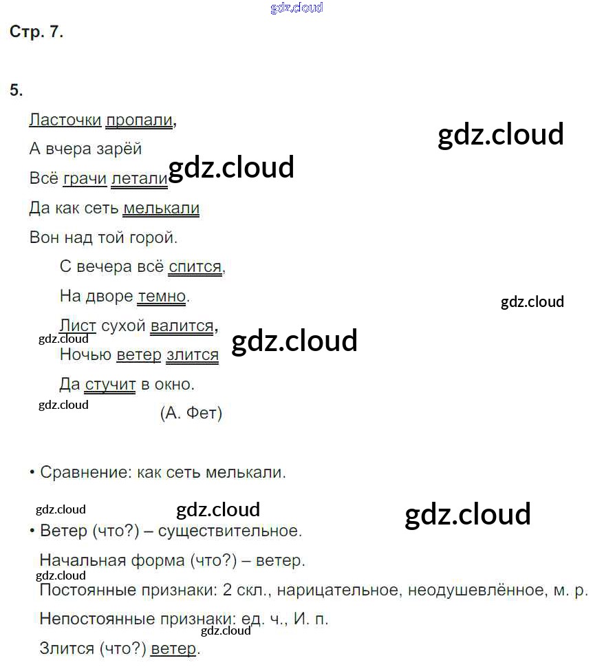 Ответ на задание 7 Рабочая тетрадь Русский язык за 4 (четвертый) класс Песняева, Анащенкова УМК 2017 Часть 1, 2