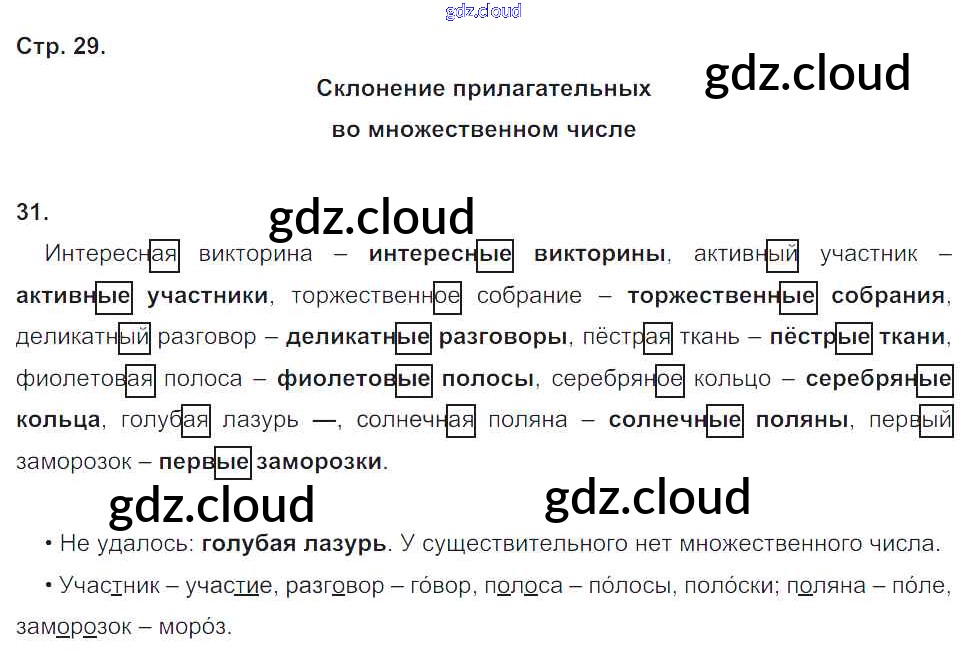Ответ на задание 29 Рабочая тетрадь Русский язык за 4 (четвертый) класс Песняева, Анащенкова УМК 2017 Часть 1, 2