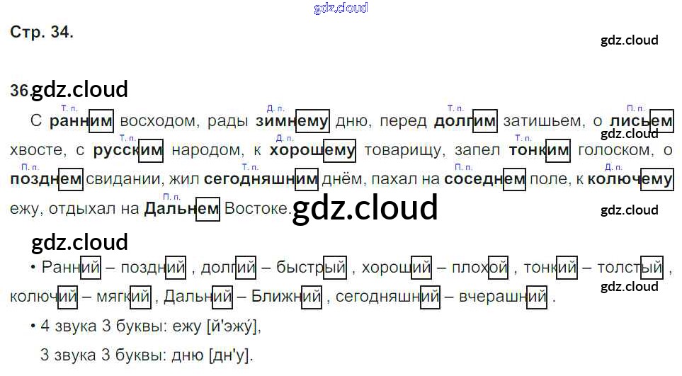 Ответ на задание 34 Рабочая тетрадь Русский язык за 4 (четвертый) класс Песняева, Анащенкова УМК 2017 Часть 1, 2