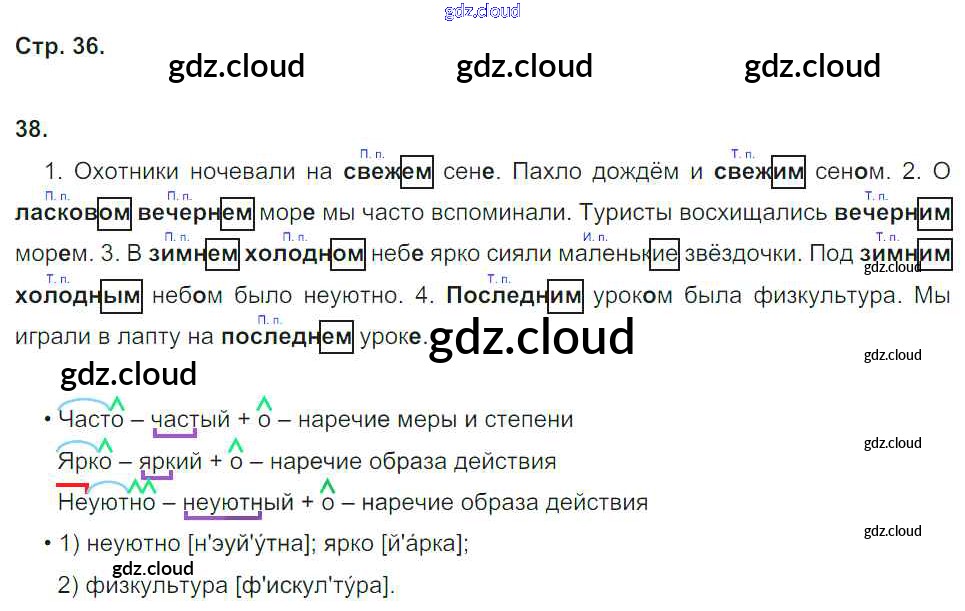 Ответ на задание 36 Рабочая тетрадь Русский язык за 4 (четвертый) класс Песняева, Анащенкова УМК 2017 Часть 1, 2