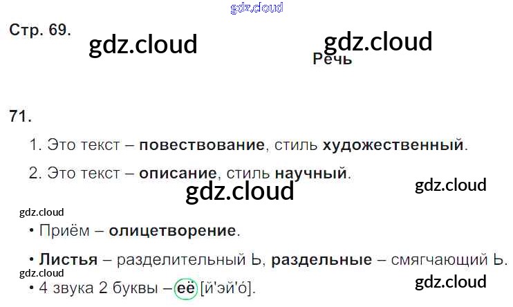 Ответ на задание 69 Рабочая тетрадь Русский язык за 4 (четвертый) класс Песняева, Анащенкова УМК 2017 Часть 1, 2