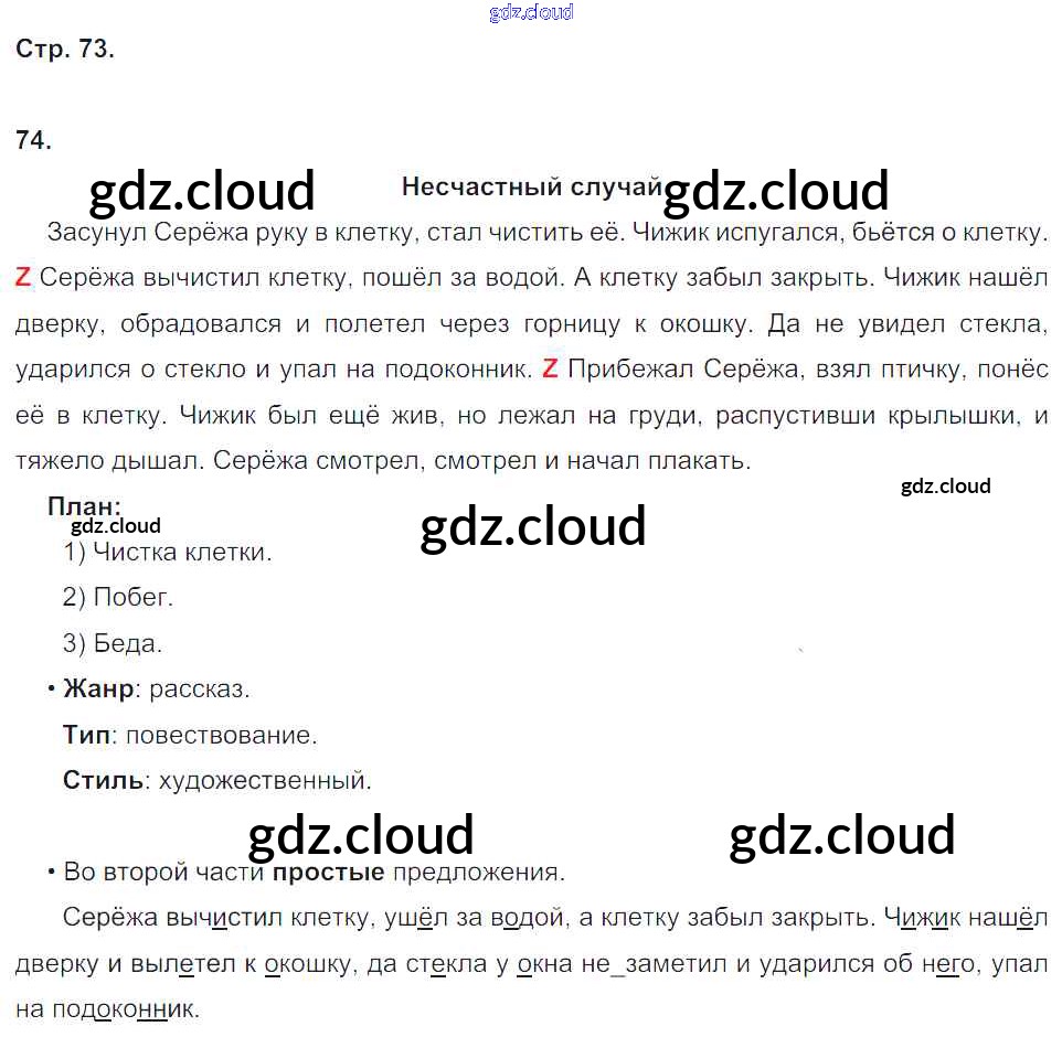 Ответ на задание 73 Рабочая тетрадь Русский язык за 4 (четвертый) класс Песняева, Анащенкова УМК 2017 Часть 1, 2