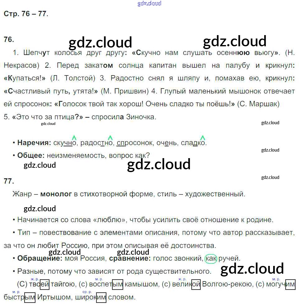 Ответ на задание 77 Рабочая тетрадь Русский язык за 4 (четвертый) класс Песняева, Анащенкова УМК 2017 Часть 1, 2