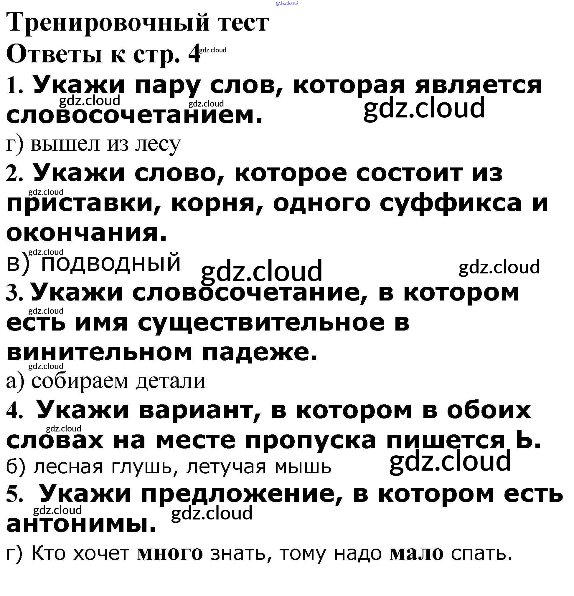 Ответ на задание Тренировочный тест стр. 4 Проверочные и контрольные работы Русский язык за 4 (четвертый) класс Максимова 2017