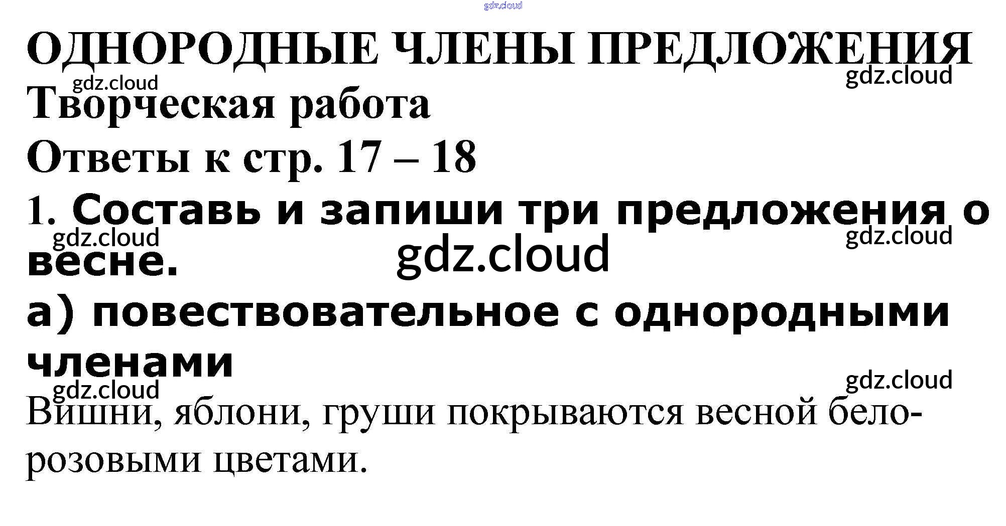 Ответ на задание Творческая работа стр. 17 – 18 Проверочные и контрольные работы Русский язык за 4 (четвертый) класс Максимова 2017