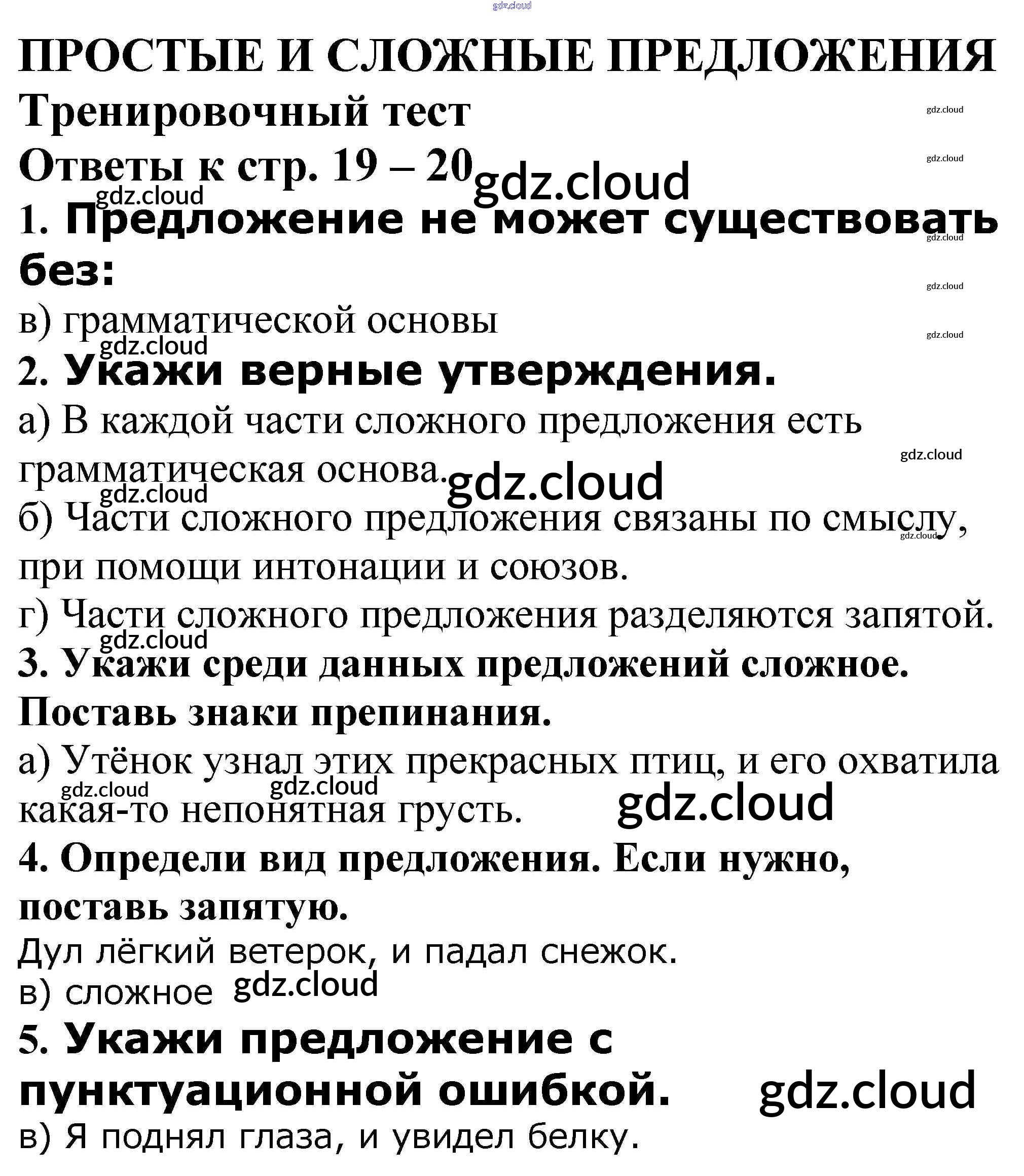 Ответ на задание Тренировочный тест стр. 19 – 20 Проверочные и контрольные работы Русский язык за 4 (четвертый) класс Максимова 2017