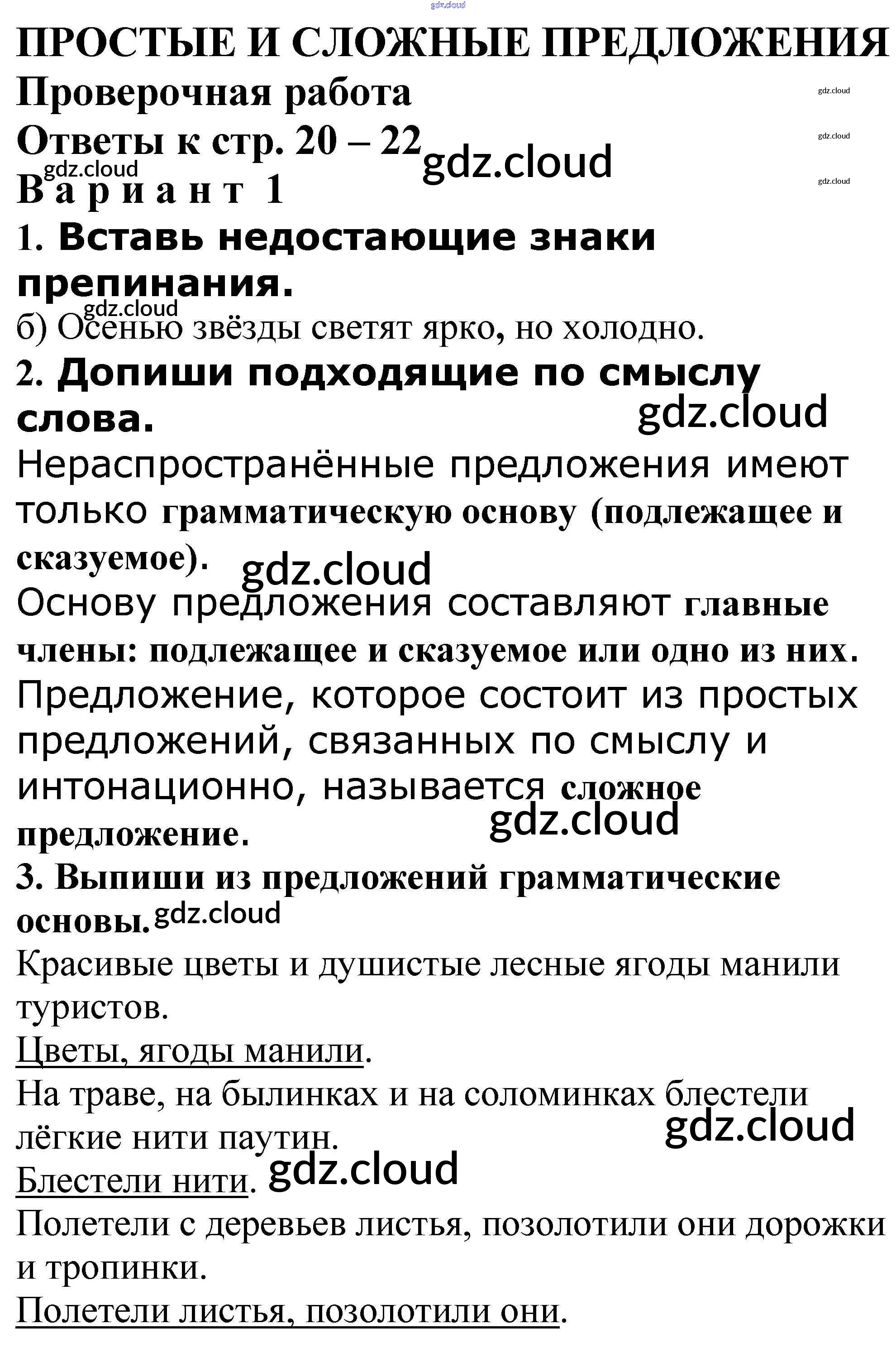 Ответ на задание Проверочная работа стр. 20 – 22 Проверочные и контрольные работы Русский язык за 4 (четвертый) класс Максимова 2017