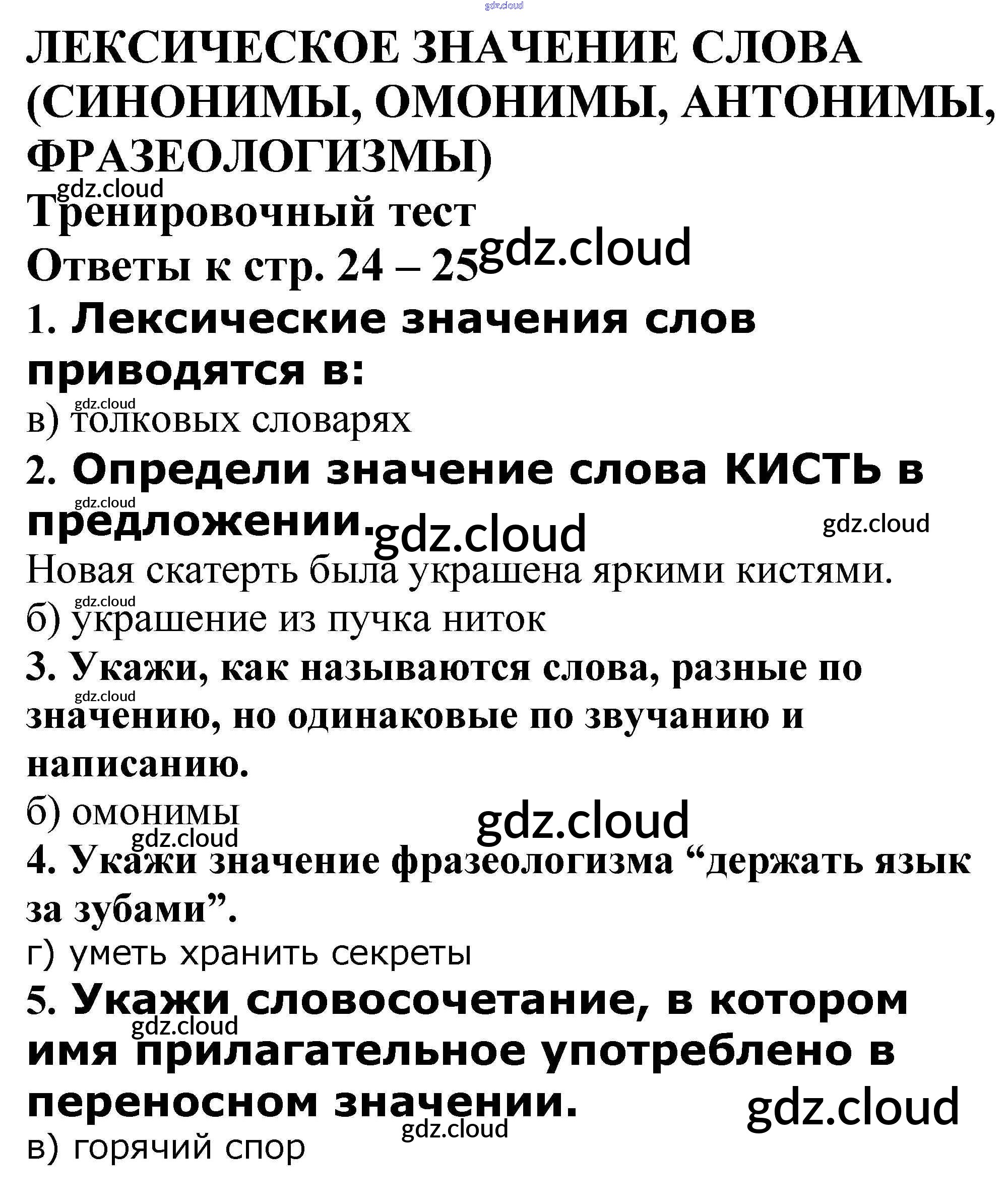Ответ на задание Тренировочный тест стр. 24 – 25 Проверочные и контрольные работы Русский язык за 4 (четвертый) класс Максимова 2017