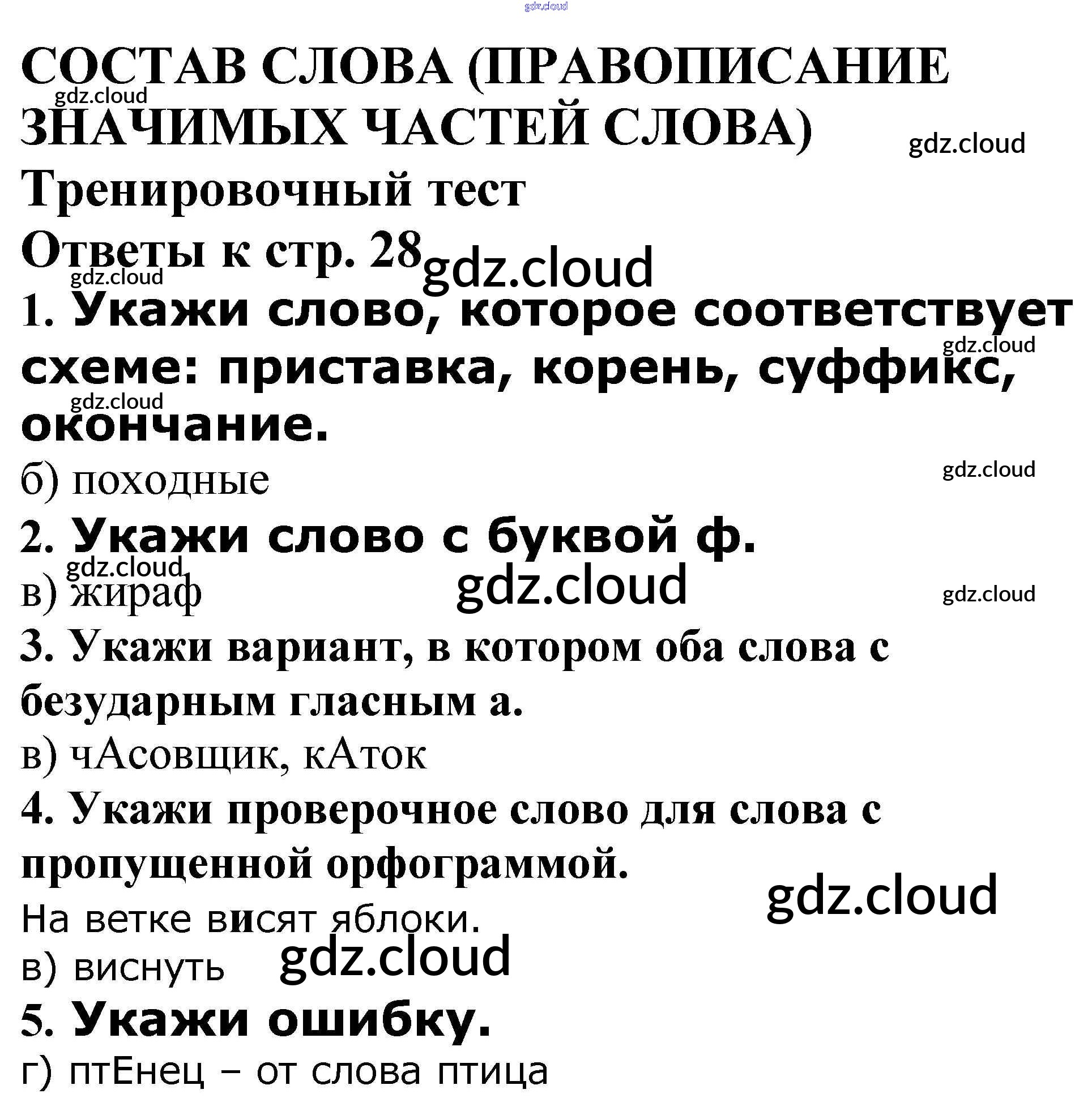 Ответ на задание Тренировочный тест стр. 28 Проверочные и контрольные работы Русский язык за 4 (четвертый) класс Максимова 2017