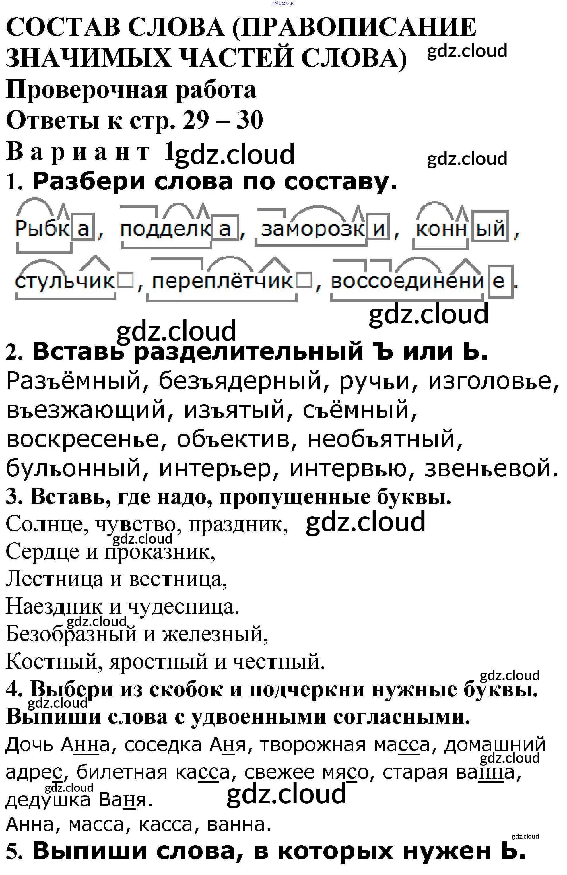 Ответ на задание Проверочная работа стр. 29 – 30 Проверочные и контрольные работы Русский язык за 4 (четвертый) класс Максимова 2017