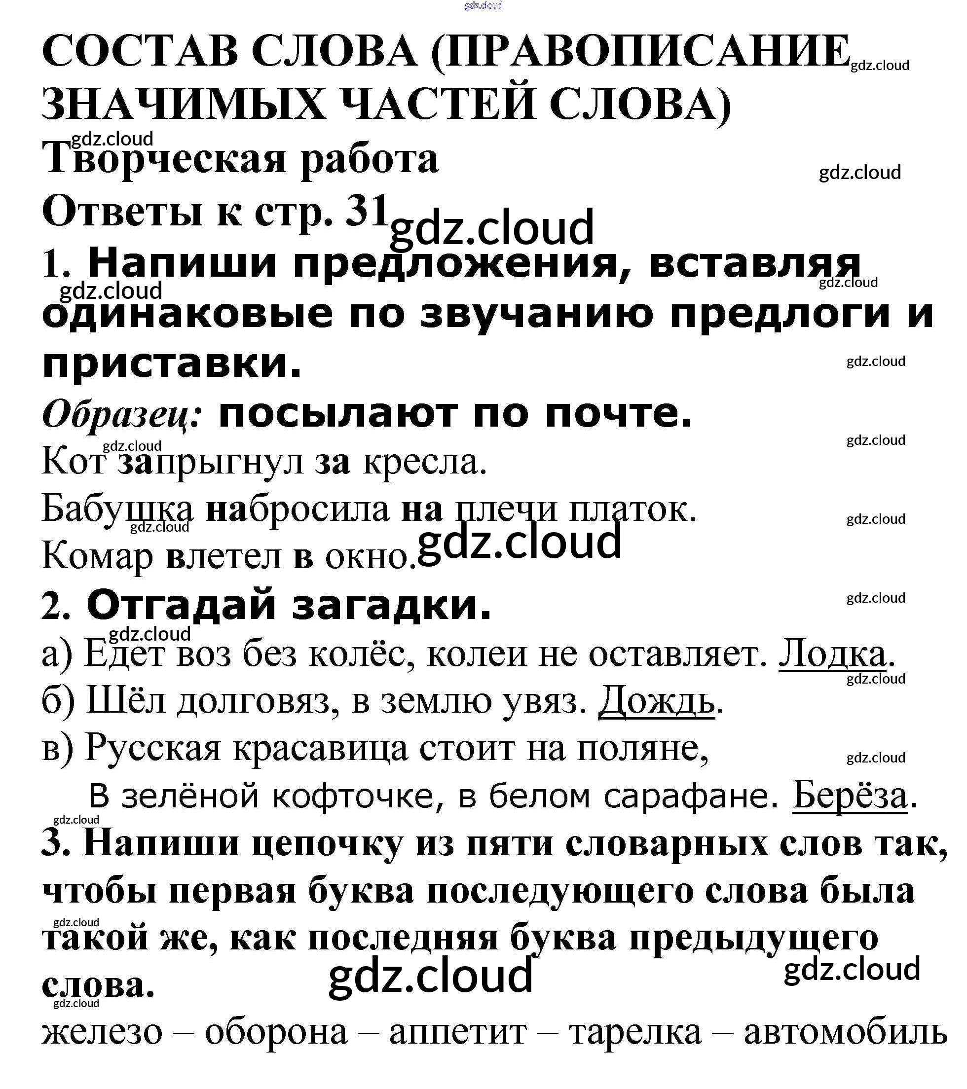 Ответ на задание Творческая работа стр. 31 Проверочные и контрольные работы Русский язык за 4 (четвертый) класс Максимова 2017