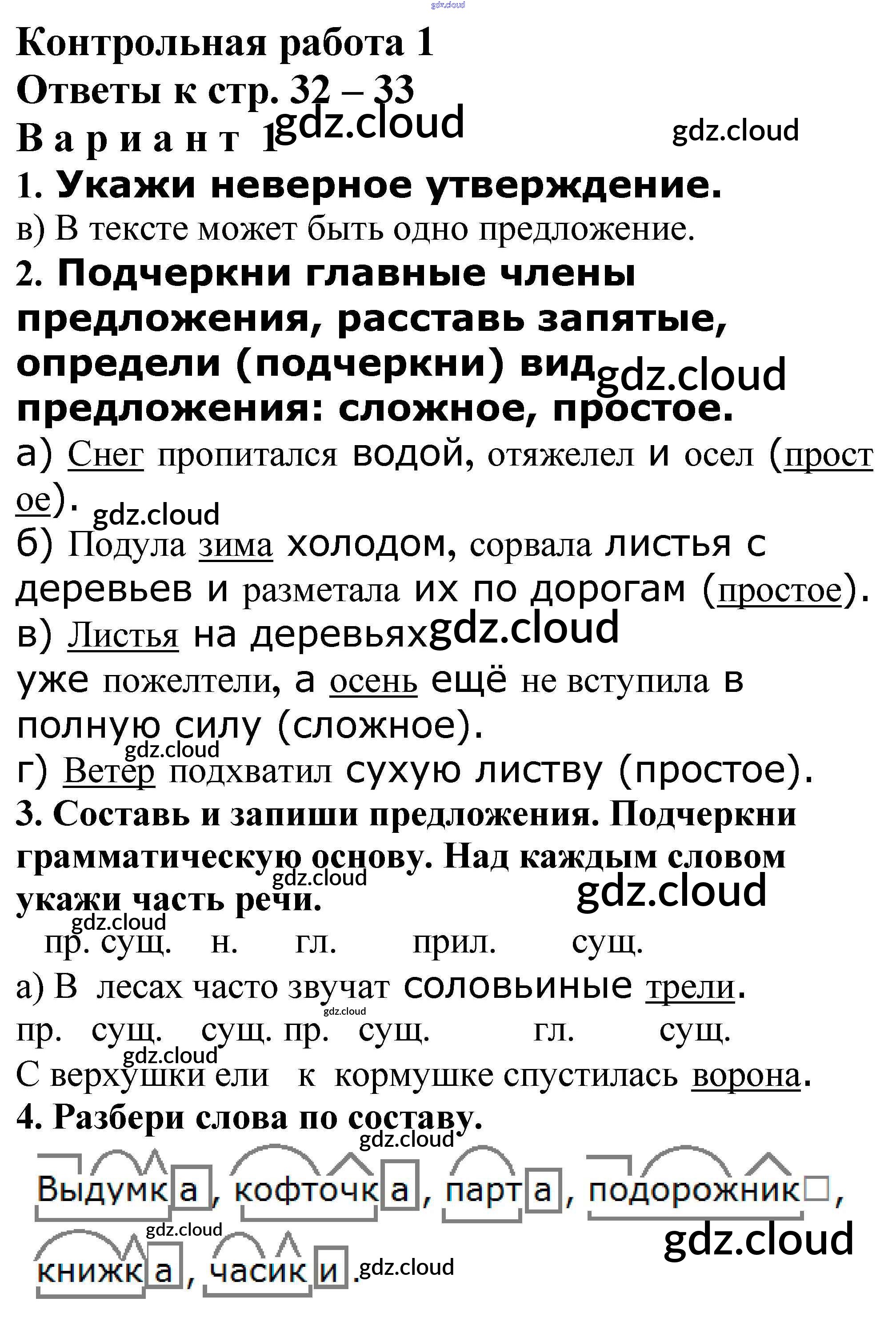 Ответ на задание Контрольная работа 1 стр. 32 – 35 Проверочные и контрольные работы Русский язык за 4 (четвертый) класс Максимова 2017