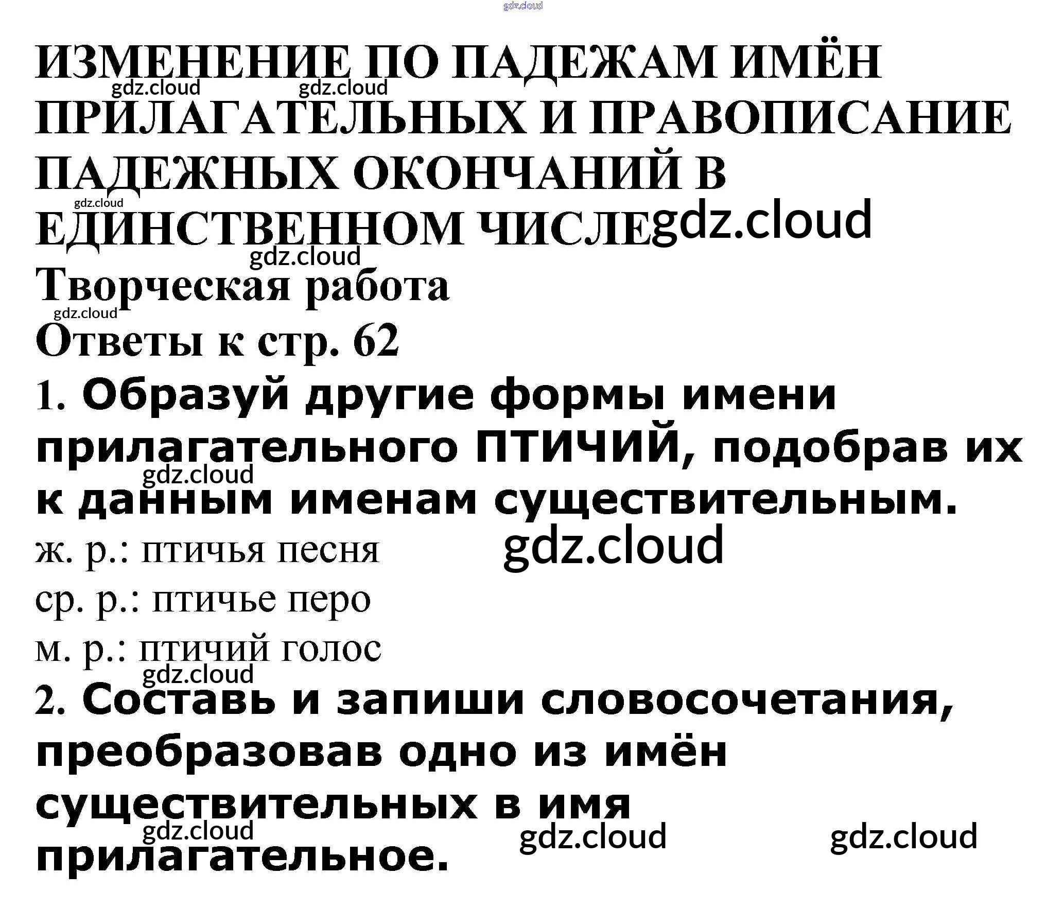 изменение по падежам имён прилагательных и правописание падежных окончаний в единственном числе / стр. 62