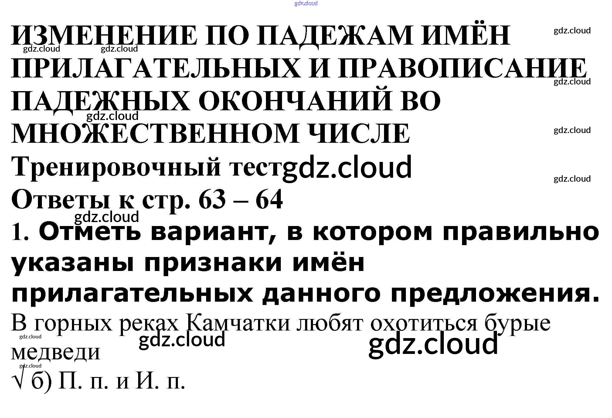 Ответ на задание Тренировочный тест стр. 63 – 64 Проверочные и контрольные работы Русский язык за 4 (четвертый) класс Максимова 2017