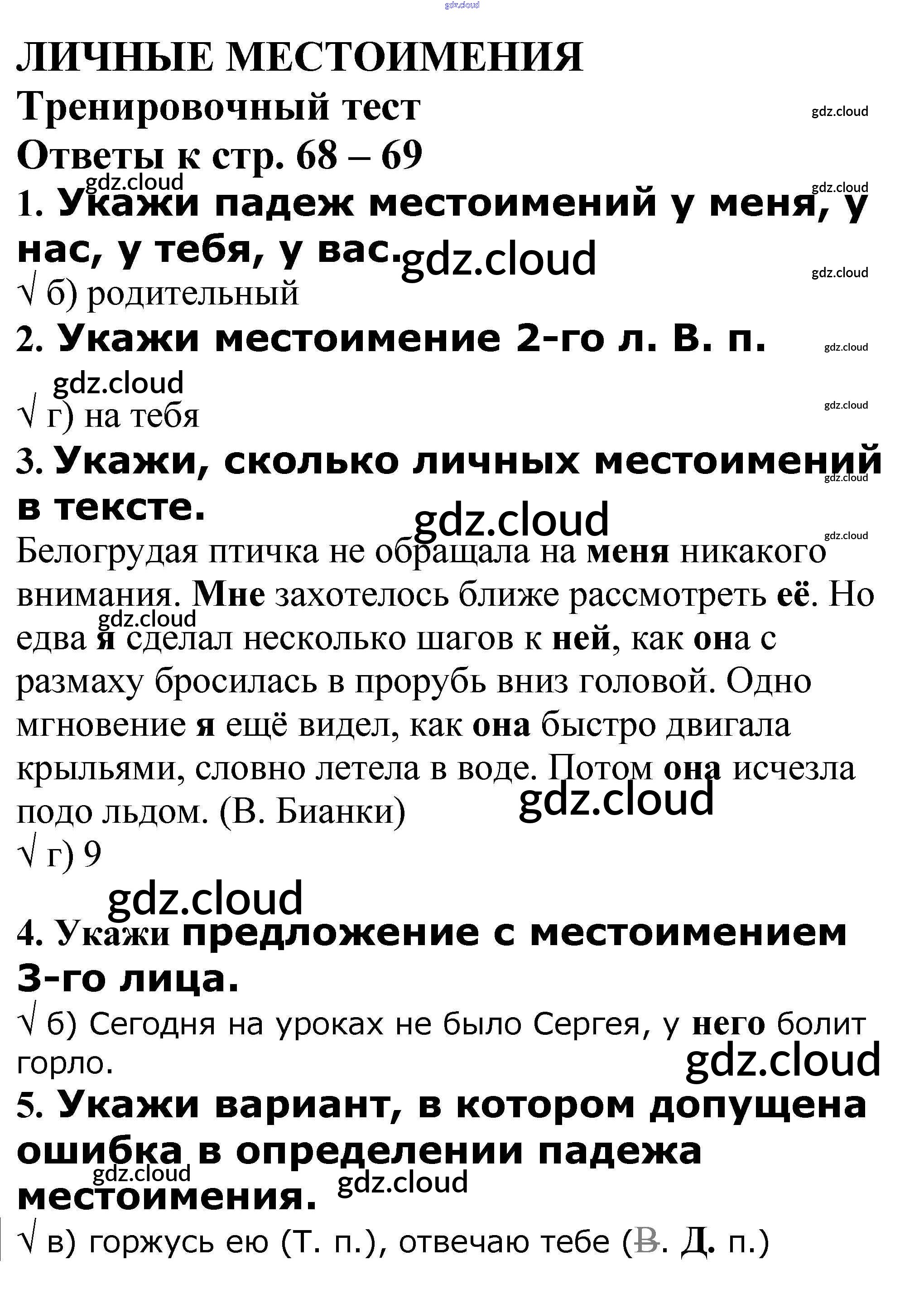 Ответы к теме: Личные местоимения по Русскому языку 4 класс Проверочные и контрольные работы Максимова ВАКО