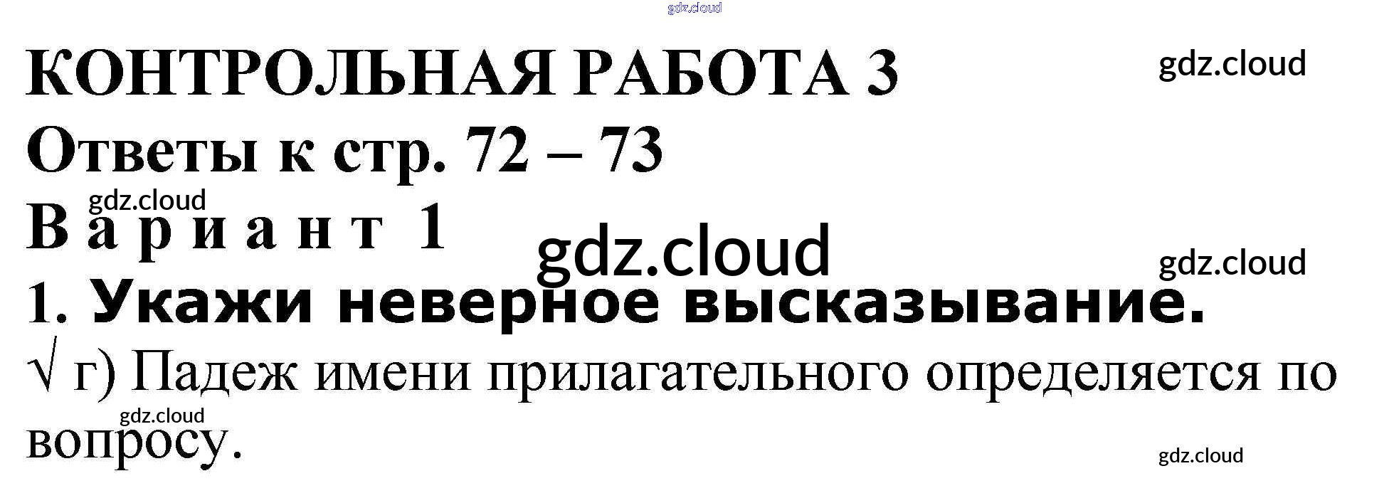 Ответ на задание Контрольная работа 3. Вариант 1 стр. 72 – 73 Проверочные и контрольные работы Русский язык за 4 (четвертый) класс Максимова 2017