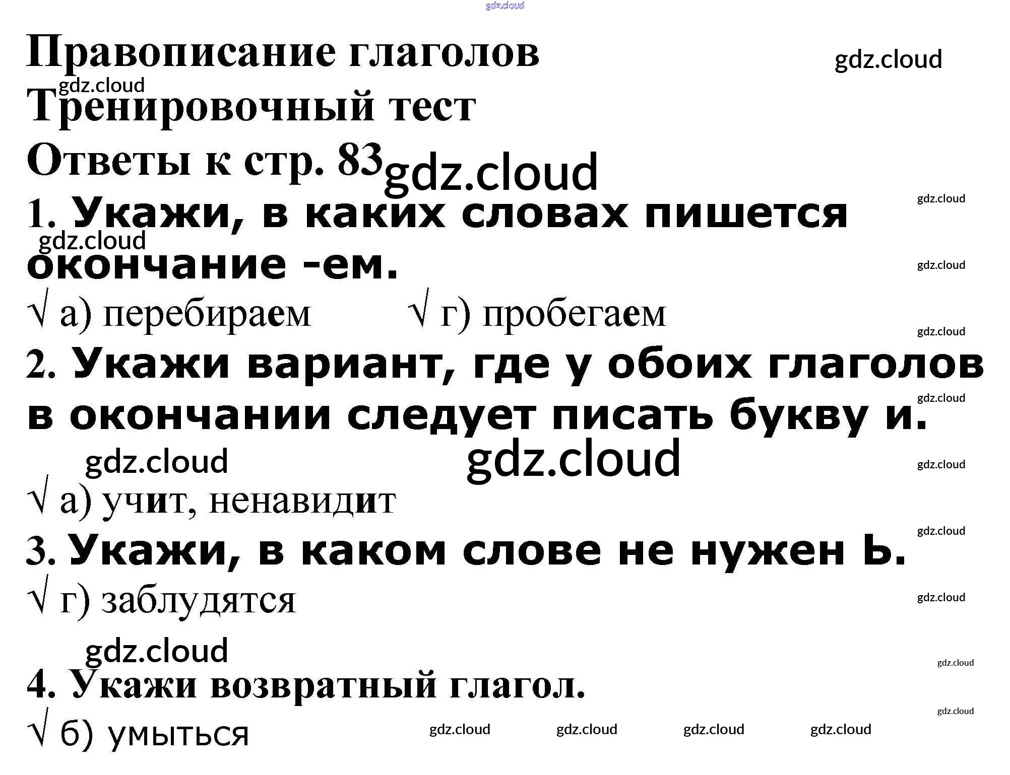 Ответ на задание Тренировочный тест стр. 83 Проверочные и контрольные работы Русский язык за 4 (четвертый) класс Максимова 2017