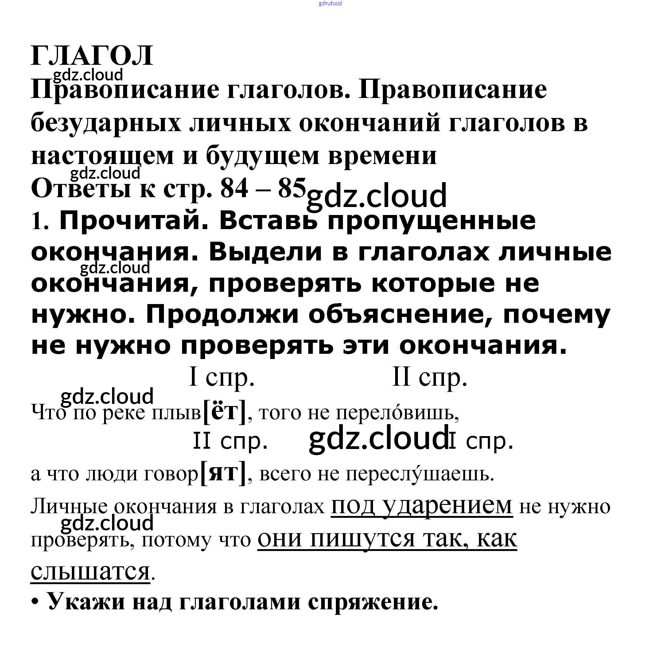 Ответ на задание стр. 84 – 85 Проверочные работы Русский язык за 4 (четвертый) класс Канакина Школа России 2017