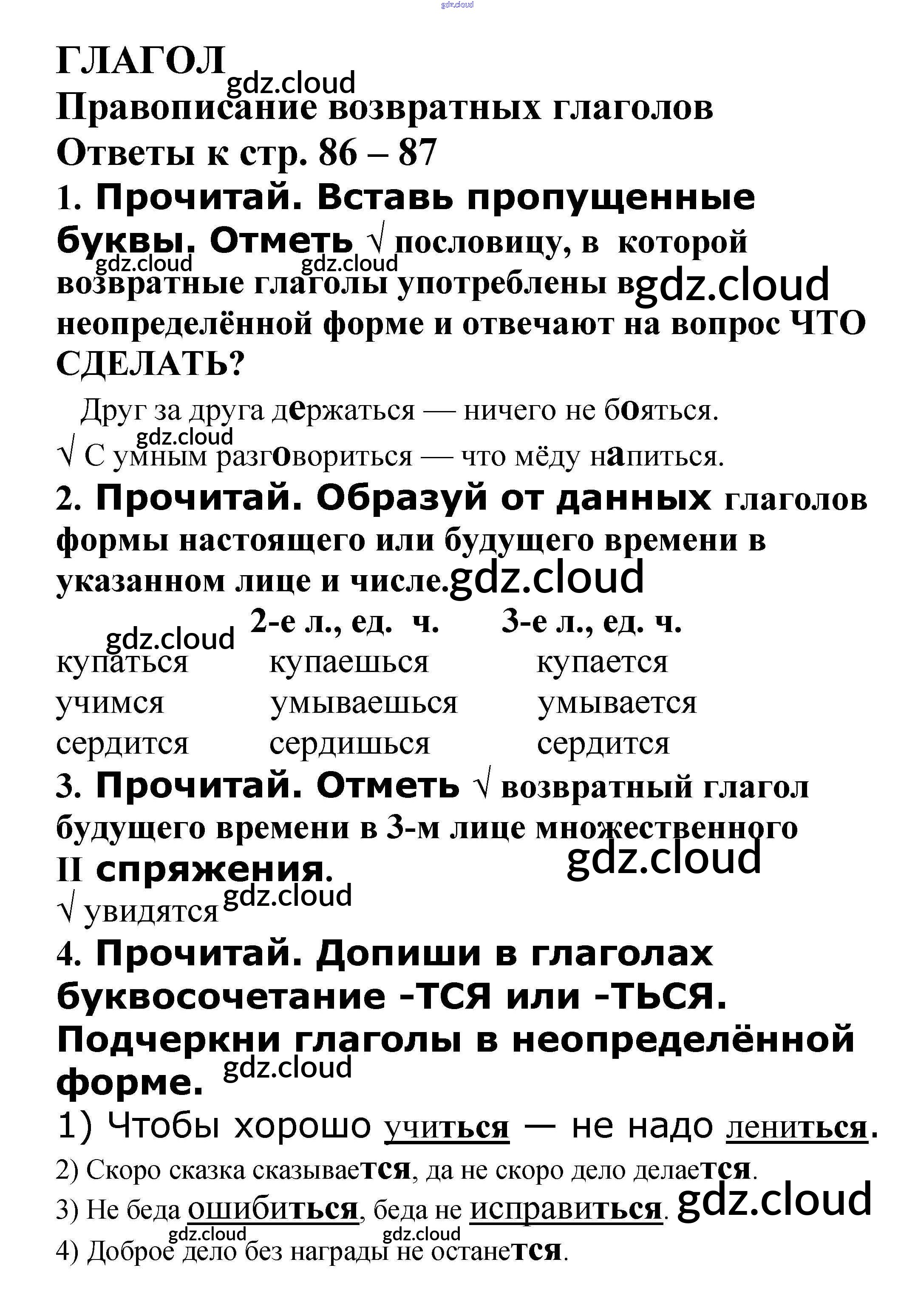 Ответ на задание стр. 86 – 87 Проверочные работы Русский язык за 4 (четвертый) класс Канакина Школа России 2017