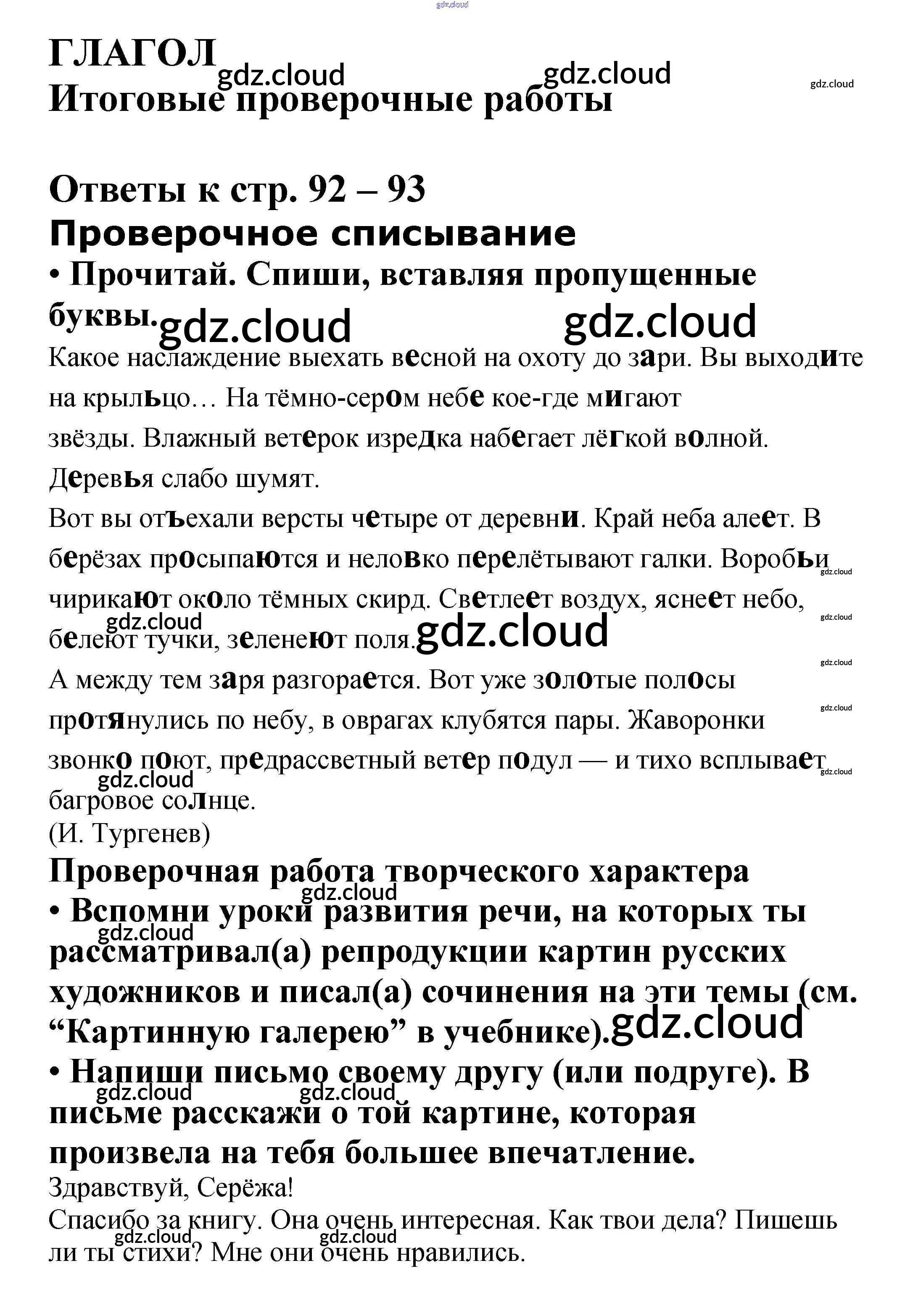 Ответ на задание стр. 92 – 93 Проверочные работы Русский язык за 4 (четвертый) класс Канакина Школа России 2017
