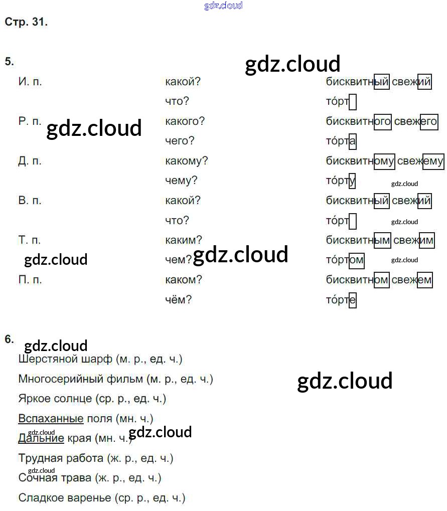 Ответ на задание 31 Проверочные работы Русский язык за 4 (четвертый) класс Тихомирова УМК 2014 Часть 1, 2