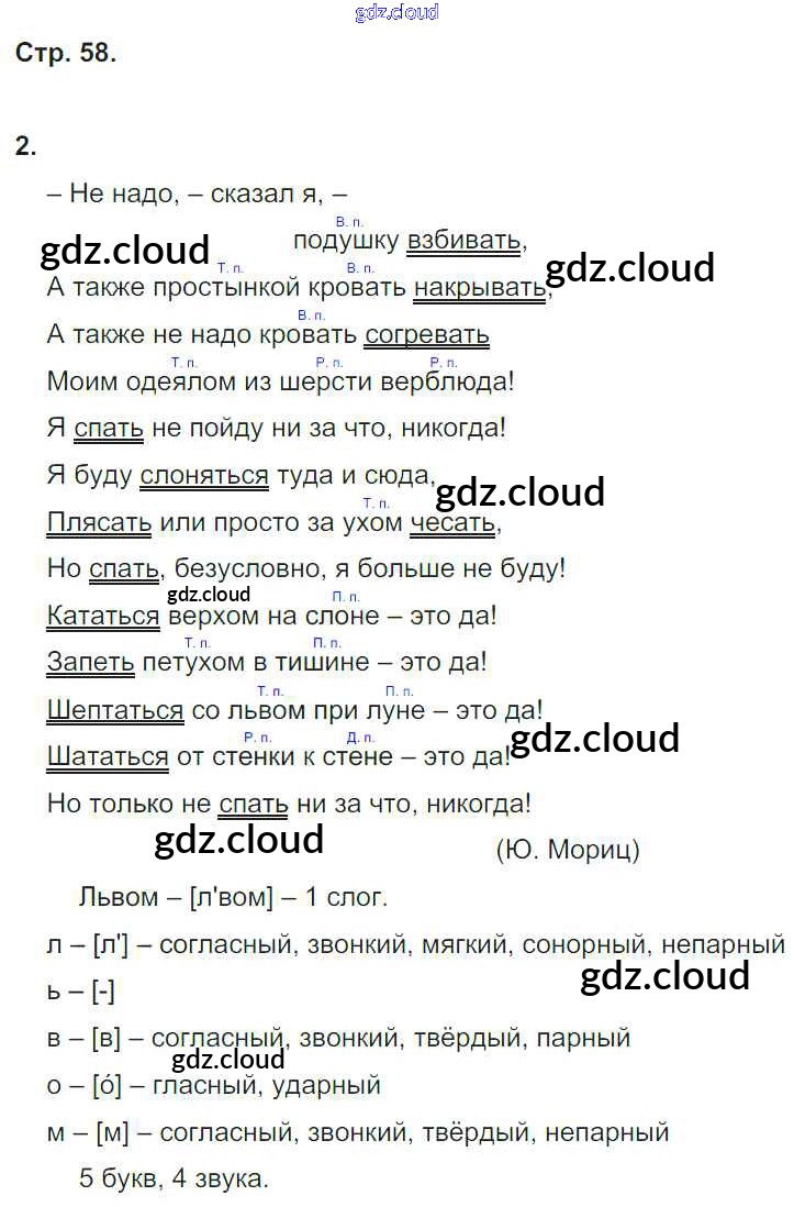 Ответ на задание 58 Проверочные работы Русский язык за 4 (четвертый) класс Тихомирова УМК 2014 Часть 1, 2