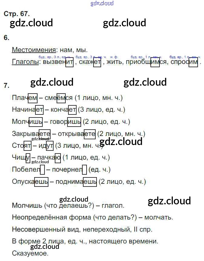 Ответ на задание 67 Проверочные работы Русский язык за 4 (четвертый) класс Тихомирова УМК 2014 Часть 1, 2