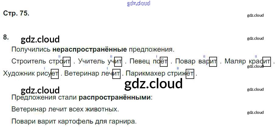 Ответ на задание 75 Проверочные работы Русский язык за 4 (четвертый) класс Тихомирова УМК 2014 Часть 1, 2