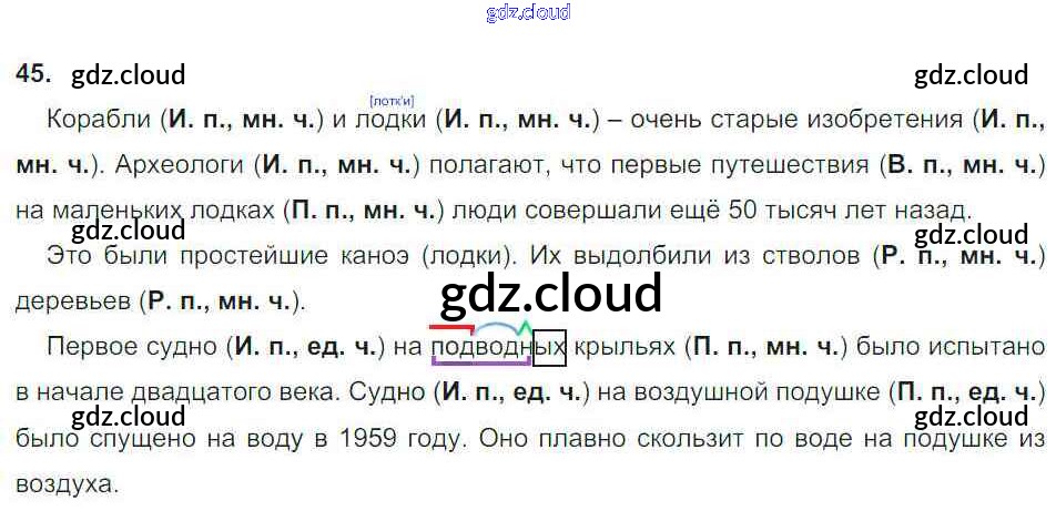 Ответ на задание 45 Тетрадь для упражнений Русский язык за 4 (четвертый) класс Рамзаева, Свинкина 2013 Часть 1, 2