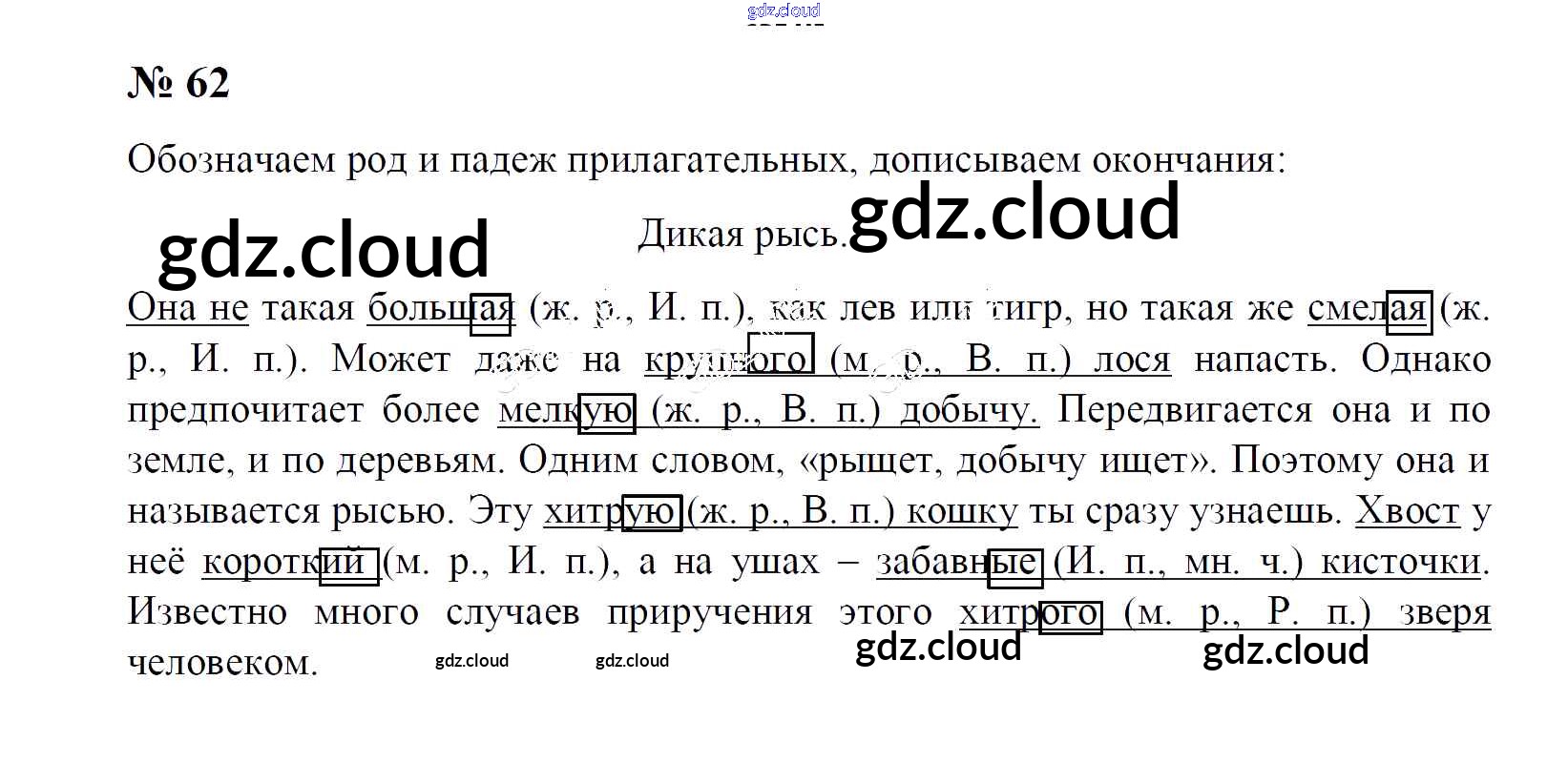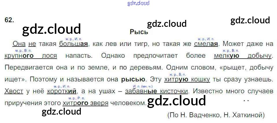 Ответ на задание 62 Тетрадь для упражнений Русский язык за 4 (четвертый) класс Рамзаева, Свинкина 2013 Часть 1, 2