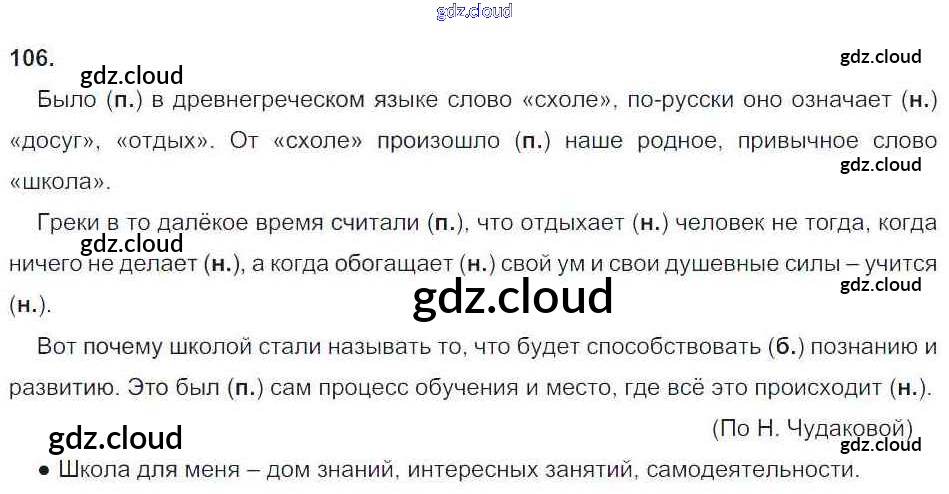 Ответ на задание 106 Тетрадь для упражнений Русский язык за 4 (четвертый) класс Рамзаева, Свинкина 2013 Часть 1, 2