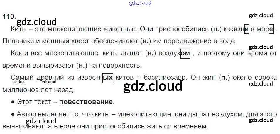 Ответ на задание 110 Тетрадь для упражнений Русский язык за 4 (четвертый) класс Рамзаева, Свинкина 2013 Часть 1, 2