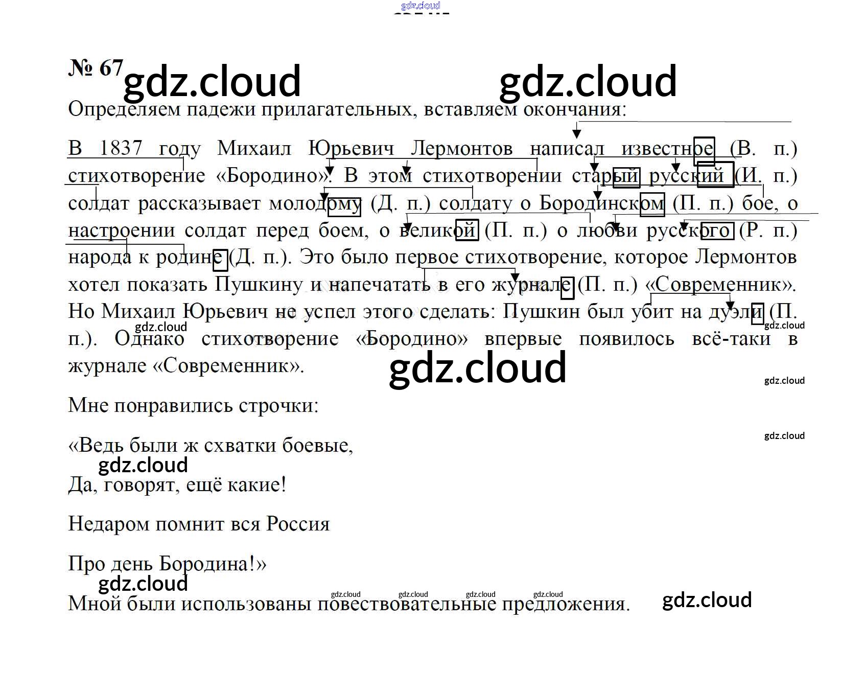 Ответ на задание 67 Тетрадь для упражнений Русский язык за 4 (четвертый) класс Рамзаева, Свинкина 2013 Часть 1, 2