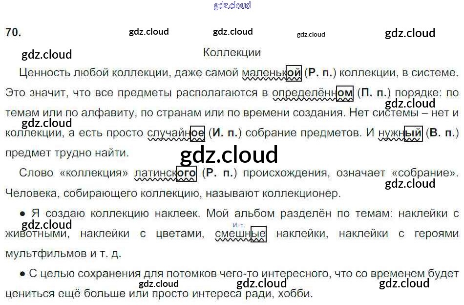 Ответ на задание 70 Тетрадь для упражнений Русский язык за 4 (четвертый) класс Рамзаева, Свинкина 2013 Часть 1, 2