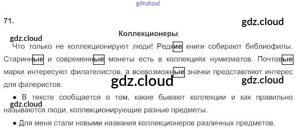 Ответ на задание 71 Тетрадь для упражнений Русский язык за 4 (четвертый) класс Рамзаева, Свинкина 2013 Часть 1, 2