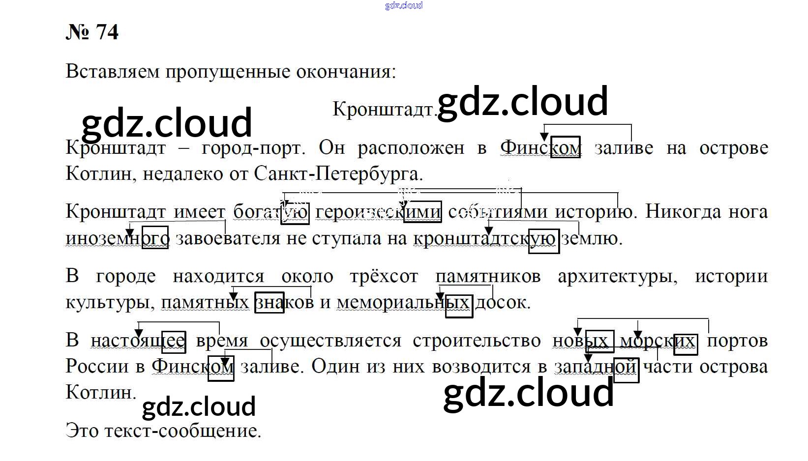 Ответ на задание 74 Тетрадь для упражнений Русский язык за 4 (четвертый) класс Рамзаева, Свинкина 2013 Часть 1, 2